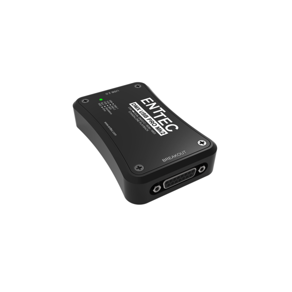 ENTPROMK2 este o interfata de control DMX, din gama ENTTEC, de ultima generatie. Sistemul electronic nou proiectat, cu un procesor de 6 ori mai rapid decat modelele anterioare, garanteaza un iluminat intens, neintrerupt, chiar si la utilizare continua. Interfata ENTPROMK2 este prevazuta cu o carcasa exterioara de aluminiu , ceea ce ii ofera o durabilitate ridicata la transport si montare in multe locatii diferite .
